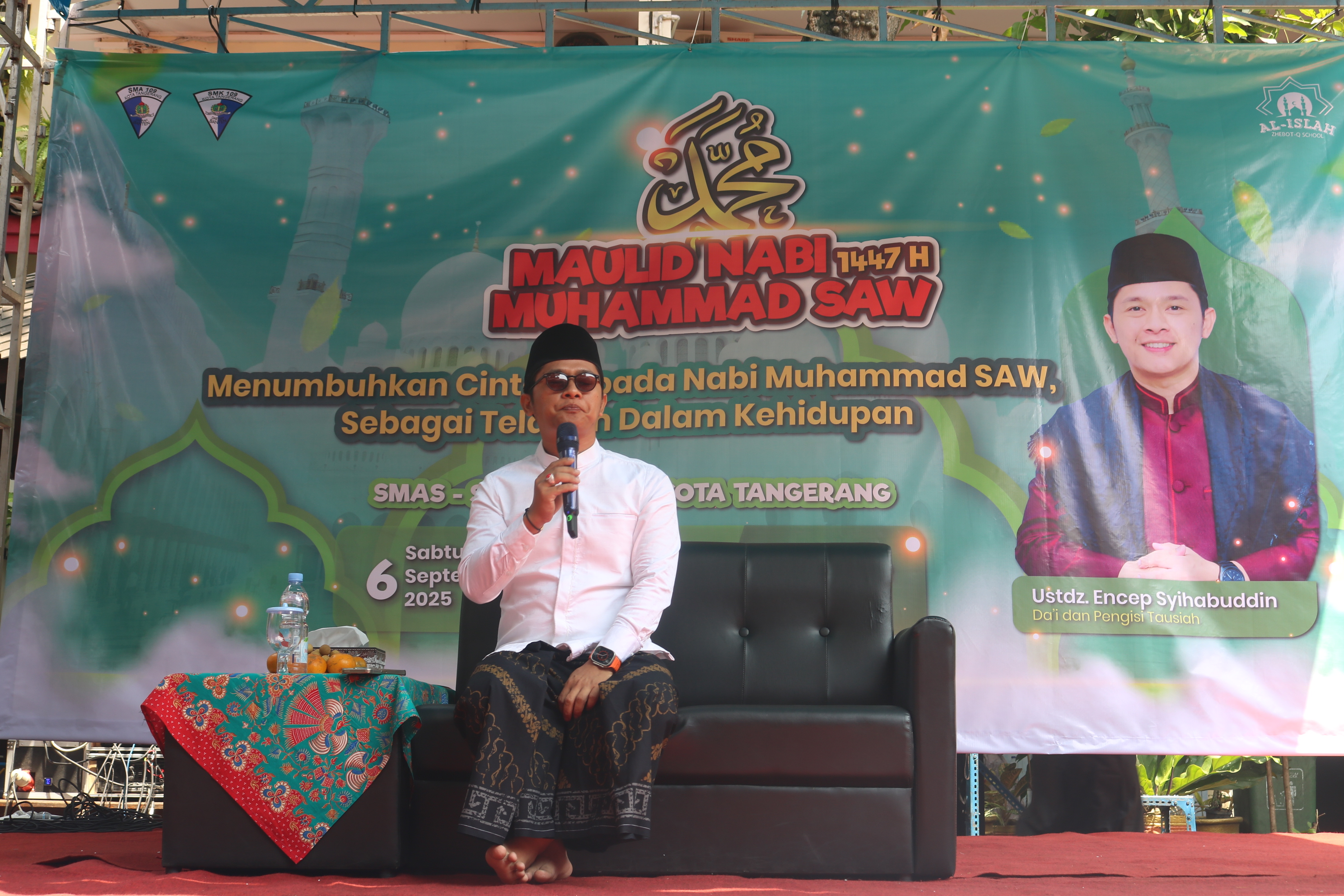 SMA PGRI 109 Kota Tangerang kembali mengadakan kegiatan keagamaan dalam rangka memperingati Maulid Nabi Muhammad SAW 1447 H pada Jumat, 5 September 2025. Tahun ini, sekolah mengangkat tema “Menumbuhkan Cinta kepada Nabi Muhammad SAW sebagai Teladan dalam Kehidupan”, sebuah ajakan bagi seluruh peserta didik untuk menjadikan akhlak Rasulullah sebagai pedoman dalam bersikap dan berperilaku sehari-hari.