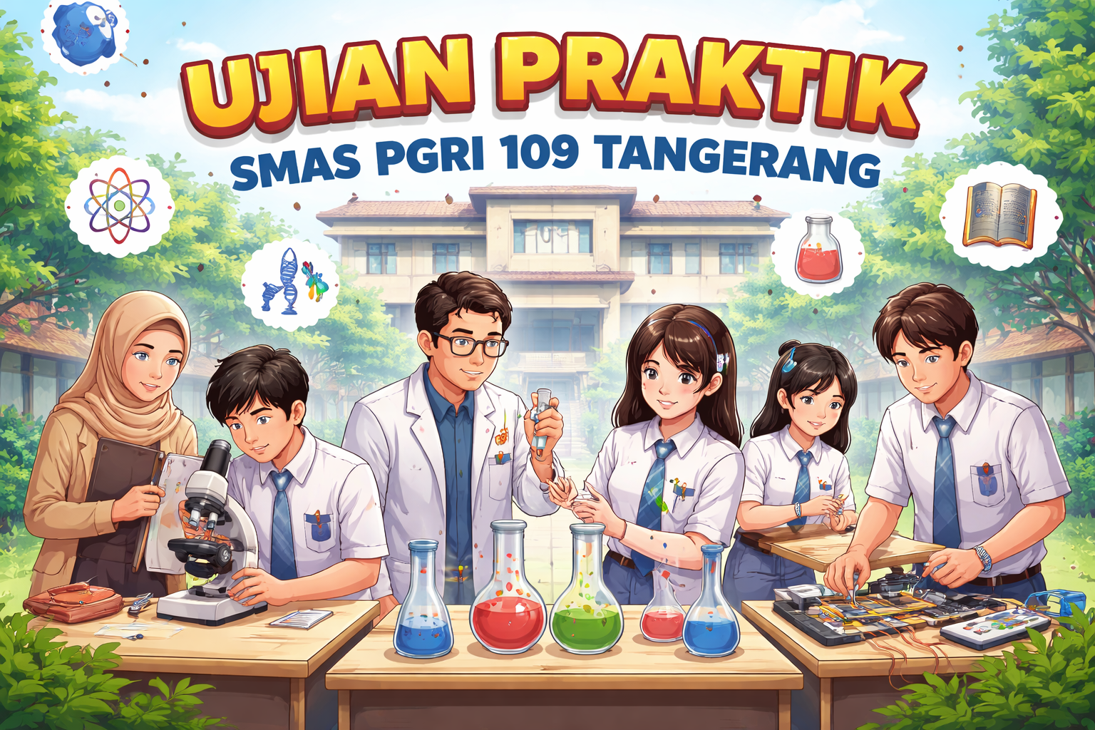 Tangerang – Ujian Praktik di SMAS PGRI 109 Tangerang tahun 2026 dilaksanakan dengan tujuan utama untuk menambah wawasan dan keterampilan siswa di bidang masing-masing. Berbagai mata pelajaran, seperti Fisika, Kimia, Biologi, Bahasa Jepang, dan Agama, dipilih untuk Ujian Praktik tahun ini. Pemilihan mata pelajaran ini didasarkan pada materi pilihan di kelas dan kebutuhan keterampilan khusus yang diperlukan dalam setiap pelajaran.